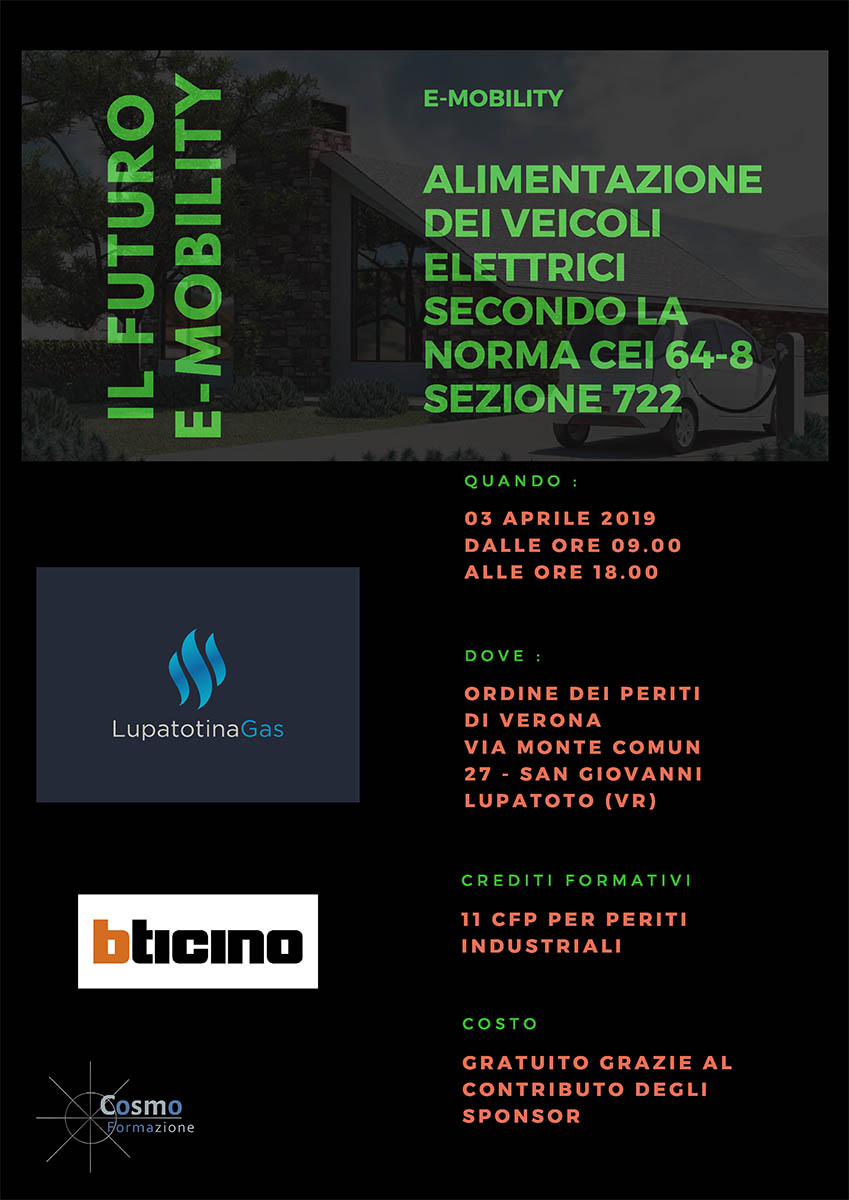 Ordine dei Periti Industriali e Periti Industriali Laureati della Provincia di Verona via Monte Comun 27, San Giovanni LupatotoALIMENTAZIONE DEI VEICOLI ELETTRICI SECONDO LA NORMA CEI 64-8 SEZIONE 722 locandina_e_mobility_03_04_2019